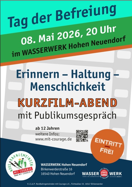 am 08. Mai ist Tag der Befreiung. Zu diesem Anlass möchten wir Euch zu einer thematisch darauf ausgerichteten Kurzfilmveranstaltung, angeboten und durchgeführt vom Nordbahngemeinden mit Courage e. V., um 20:00 Uhr in`s Kinder- und Jugendzentrum Wasserwerk – ALEP e. V. einladen.